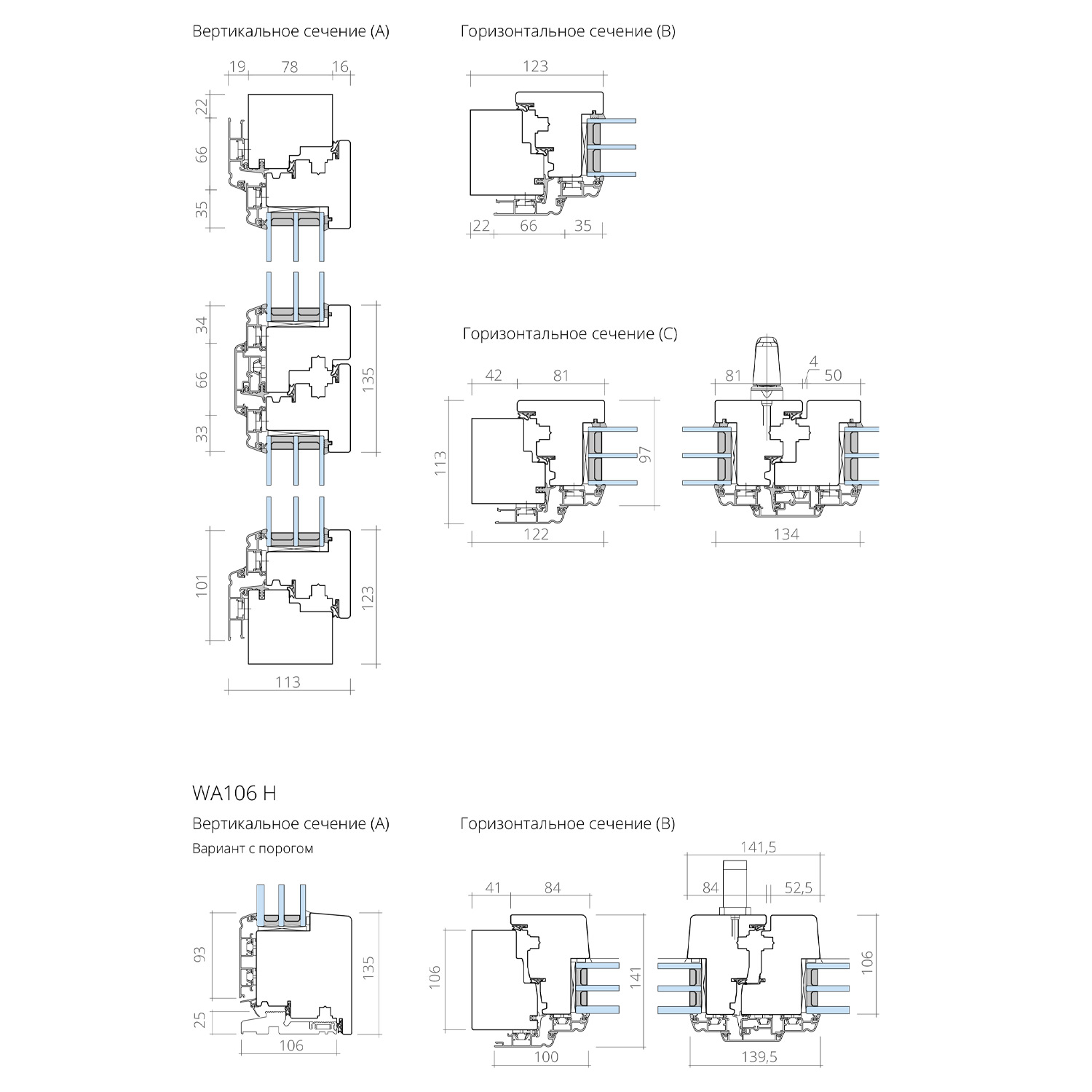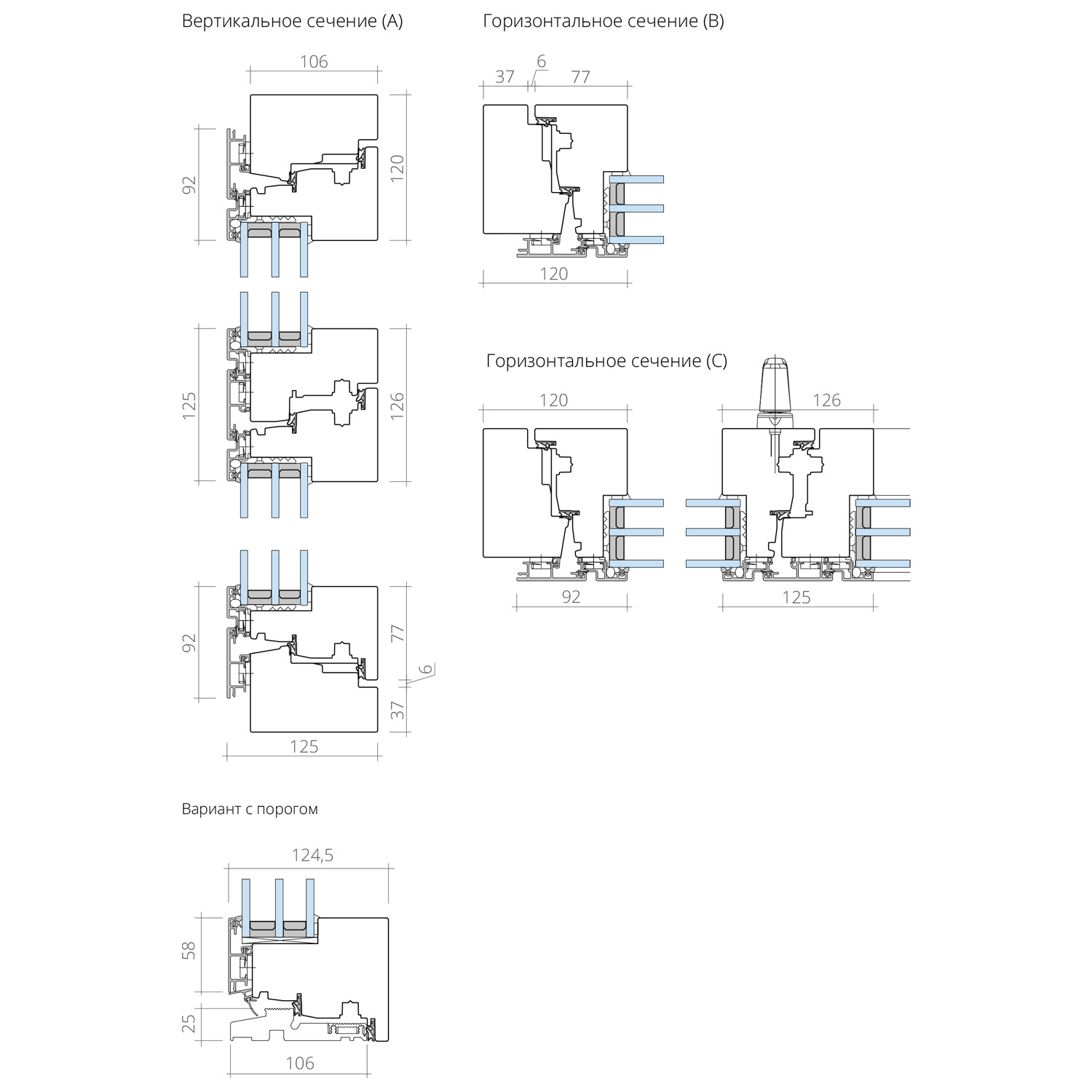 Конструкция этого профиля сочетает в себе элегантность, надёжность, а также улучшенные показатели воздухо- и водопроницаемости, звуко- и теплоизоляции, достигаемые за счёт применения дополнительной металлической створки.